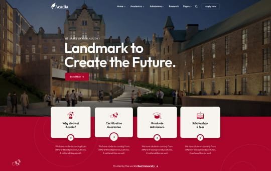 Acadia University is a distinguished public university, values learning in the liberal arts and sciences as a cornerstone of individual development and a vital foundation.We will ensure that our students develop both the skills that a sound education provides and the competencies essential for success and leadership in the emerging creative economy.